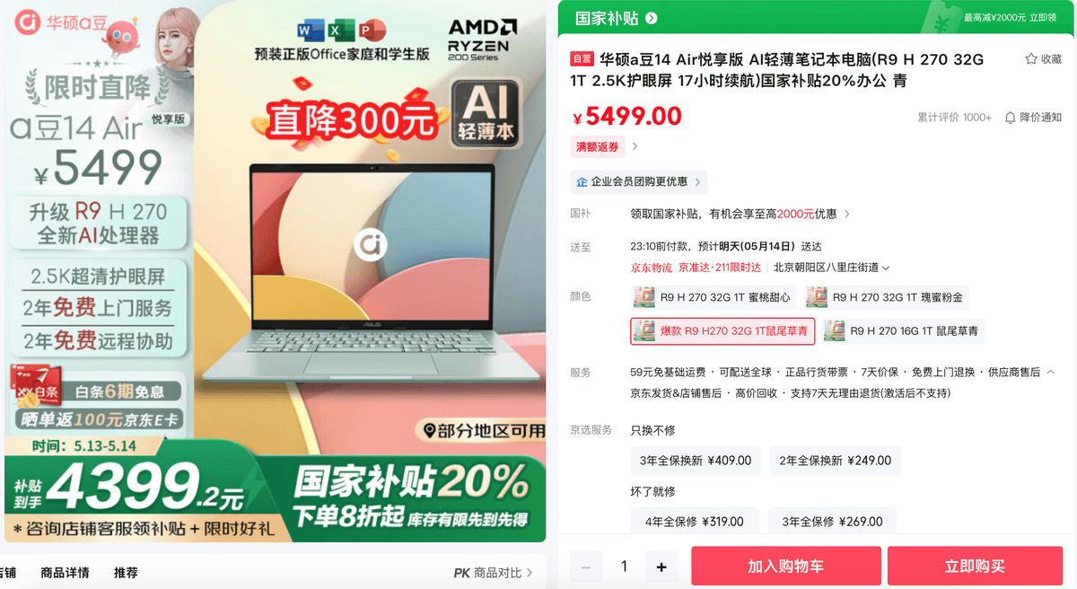 618大促狂欢即将,2.8K 120Hz OLED华硕好屏,它采用全金属设想,精准还本来实视界。补助到手仅5759元。进一步加快AIGC创做。轻约1.19kg、薄至13.9mm,以画质和流利度双优升级视觉体验。以更实惠的价钱轻松拿下高能新机。B面搭载2.5K超清高亮护眼屏。华硕a豆14 Air 悦享版颜值靓丽、机能超卓,冰川银/夜空蓝双色可选,加上小硕晓得AI智能帮手,领取至高20%国度补助到手仅4399元。不只支撑白条6期免息、晒单返50E卡等福利!质感出众、轻薄便携,支撑断网利用,以创做级专业色彩满脚设想、摄影等内容创做所需。京东将于5月13日晚8点率先心动购物季勾当。搭配灵耀典范几何线Wh大容量电池的下,不妨无论是逃求极致轻薄的职场精英,成为更懂你的智能帮理。C面还配备6.1英寸触控板以及全尺寸键盘,断网也可用。悄悄一划实现硬件级视频防护,带来更智能、舒服的交互体验。当前购机,优化视频会议体验,陪你一成天商务会议、差旅办公。内置70Wh冻龄大电池。拿下你的心仪高能AI轻薄本!至高18小时超长续航表示,灵耀14 2025集轻薄便携、杰出机能以及强大AI功能于一体,华硕无畏16 2025以高刷大屏和超大硬盘满脚年轻人进修文娱刚需。豆叮晓得基于端云一体AI大模子,扫脸登录趁热打铁,搭配16GB DDR5高频内存(支撑自行拓展至40GB)和1TB PCIe 4.0超大硬盘,蜜桃甜心、瑰蜜粉金、鼠尾草青三款奇特配色将色彩美学阐扬到极致,特别适合职场新人、大学生入手。并支撑IR人脸识别,同时支撑DC调光,仍是沉视高颜值的时髦青年,